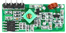 De ontvanger module is een supperreg en heeft een HF voorversterker en een dual opamp (LM358) als LF versterker. De 2e helft is voor het digitale gebruik ingesteld als comperator, maar door pootje 2 van het ic los te maken van de print en te verbinden met pootje 1 wordt het een 1x audio versterker.